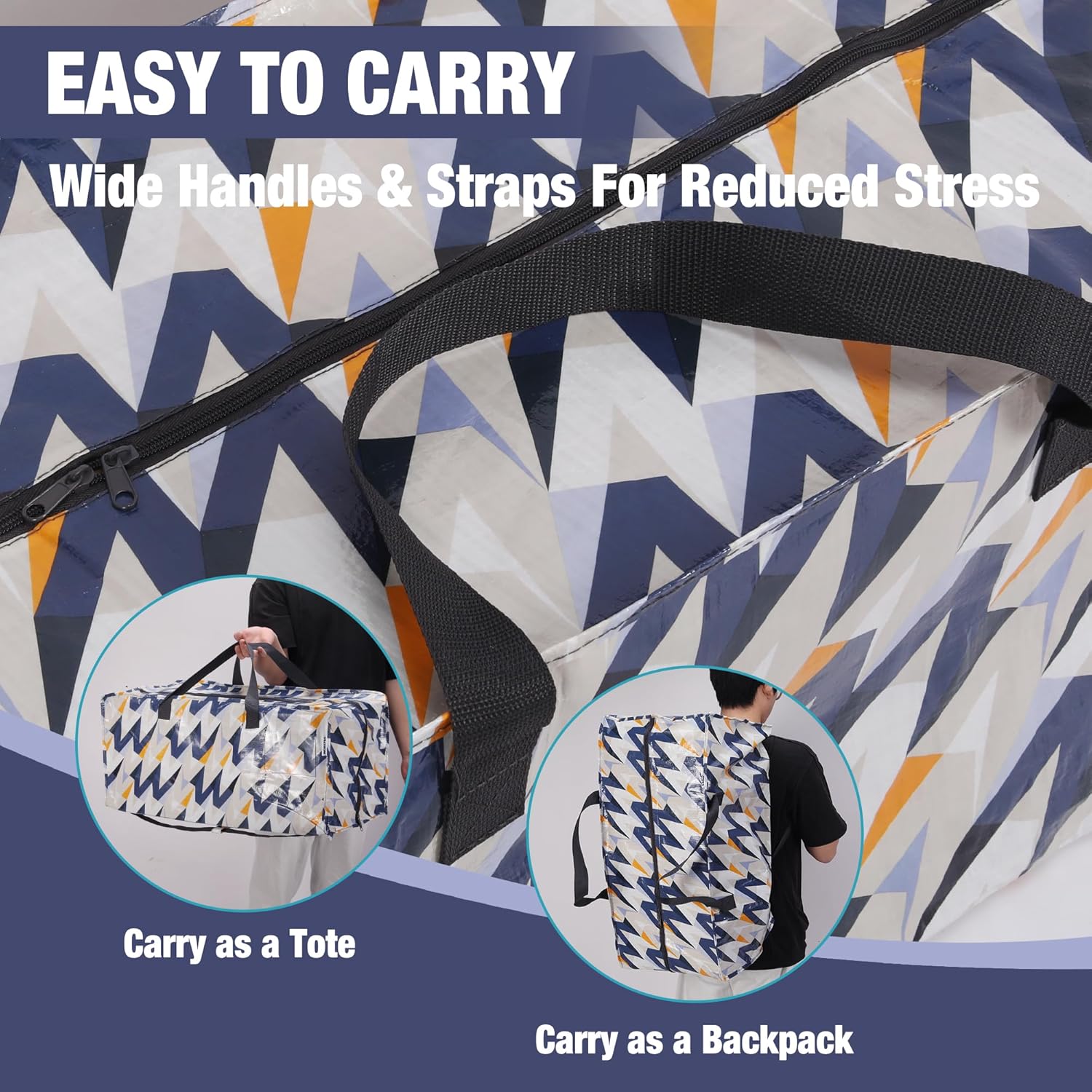 Easy to Carry: The wide handles and straps reduce stress when carrying heavy loads, and the webbing is reinforced with three layers for lifting support. This heavy-duty moving bag can be carried as a tote or backpack, making it convenient and easy to transport