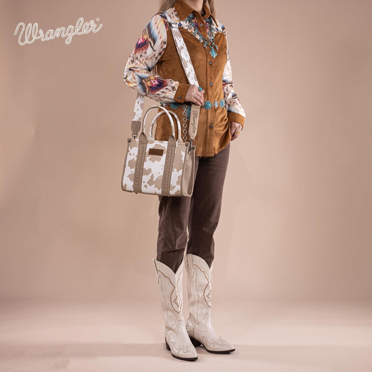 Wrangler Cow Print Tote Bag for Women Western Purse Boho Top Handle Satchel Handbag with Signature Strap