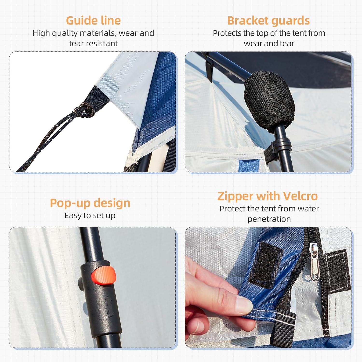 【Water-Resistant & Durable】With fabric upgrades, these cabin tent have excellent durability and a water resistance rating of 3000mm, inverted seams and taped seams on the rainfly and instant tent body help keep water out, ensuring you stay dry on rainy days